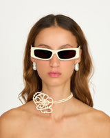 The Laudi Necklace is a hand crafted pearl choker, designed to capture the shape of a blooming flower. The design is arranged by using assorted freshwater pearls, each with subtle differences in shape and sizes. The process of creating this piece is labor-intensive but results is a sophisticated, feminine silhouette that rests gently at the neckline. The three inch extension chain offers the option to wear this piece as a choker or as a longer style necklace.