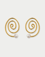 Unique in nature and nearly weightless, these earrings are crafted from wire, originally handmade and then reproduced in 18k gold-plated brass. Finished with a freshwater pearl, these ultra-light earrings can be comfortably worn all-day.