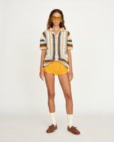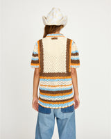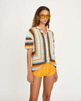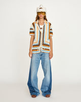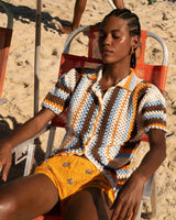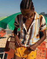Our Leandro is a hand crocheted button-down constructed in a multi-colored interwoven pattern. Each Leandro button-down takes up to 2 days to make and is produced in limited quantities in Brazil by a small group of artisanal women we’ve worked with since launching our ready-to-wear category.