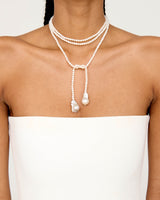 As part of our permanent collection, the éliou Luani wrap features hand-strung freshwater pearls, slowly crafted in our Miami studio by our team of female assemblers. Each wrap is elegantly finished with two high-quality baroque pearls, which timelessly secure each strand.
