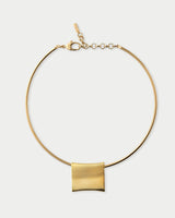 Our Carre necklace features a geometric square design with a sleek gold-plated charm suspended from a gold plated wire.
