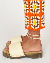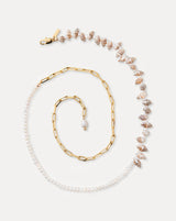 Our Lola anklet wraps the ankle three times, and is composed of freshwater pearls, a heavily gold plated chain and natural tigger nassau shells. A piece made for scope, it can also be worn as a bracelet, necklace, or belly chain and is handmade in Miami by our small team of female assemblers.