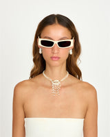 To keep your pieces in original, crisp condition remove before any sweaty activities. Keep it au naturale and avoid cleaning products, body lotions, hairspray, and perfume when wearing your Éliou.
