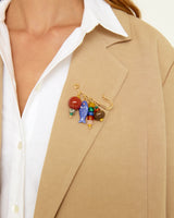 Our Fish Bait Brooch features a hand-carved, man-made lapis lazuli fish pendant, carnelian, natural wood, and a mix of precious gemstones set on an 18k gold plated brooch. Lightweight and full of charm, it feels like a little keepsake you discovered on your travels—a unique piece meant to be treasured and worn wherever life takes you.