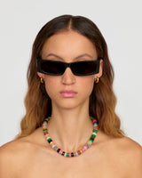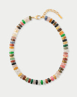 Slightly chunky, perfectly imperfect, and always in season. Our Guara necklace is composed of hand carved mixed precious stone, glass seed beads and 18k gold plated rondelles. Designed to be worn solo or stacked.