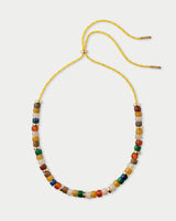 A bright, gemstone-filled strand designed to be worn every day. Hand-strung in our studio, the Pia Necklace features a mix of yellow jade, malachite, quartz, carnelian, and lapis lazuli, accented with 18k gold plated rondelle beads. Each stone carries its own unique variations, creating a layered, earthy palette that feels warm, tactile, and full of character. The adjustable gold-plated bezel lets you wear it long or short, making it effortlessly versatile for any moment.