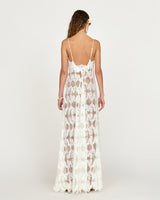 Our best-selling Paula Dress returns in a new fabrication. Made from white, semi-sheer lace, this iteration was selected for its texture and natural drape. Lace appliqués are hand-sewn at the bust for added coverage and comfort. Designed for the modern Éliou bride or anyone drawn to a bold look.