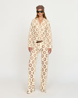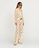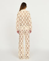Cut from 100% cotton with intricate floral cutouts, the Rafa Pant mirrors the precise pattern work of its matching Bia Top. Each flower motif is carefully hand-aligned during production to form a continuous, symmetrical design that moves fluidly with the body. Mid-rise with a relaxed, wide-leg fit, it’s best worn with skin-toned undergarments.
