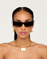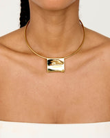 Our Carre necklace features a geometric square design with a sleek gold-plated charm suspended from a gold plated wire.