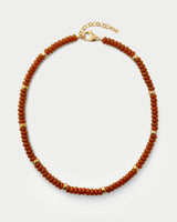 A balance of depth and versatility, this unisex Aureo necklace features hand-strung Carnelian beads accented with 18k gold-plated rondelles. Made in limited batches, it stands out on its own or layers easilly with other pieces.