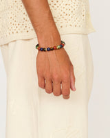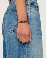 Our Dimitri bracelet features lapis lazuli, tiger eye, red jasper, african turquoise and gold plated rondelles on an adjustable paracord bracelet. Vibrant enough to wear on its own or worn alongside your other éliou pieces for the final finishing touch.