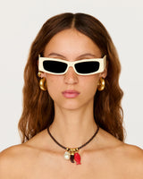 To keep your pieces in original, crisp condition remove before any sweaty activities. Keep it au naturale and avoid cleaning products, body lotions, hairspray, and perfume when wearing your Éliou.