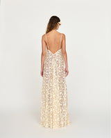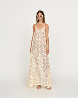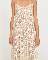 Our best-selling Paula Dress returns in a new fabric. Crafted from floral lace, the semi-sheer fabric catches light in motion. Styled with skin-toned undergarments for a clean, continuous look.