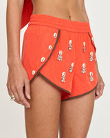 The Track Shorts embody the core juxtaposition of our brand, a blend of ultra-feminine detail and casual wearability. Crafted from lightweight nylon, they are hand-embellished with natural cowrie shells and appliqués, transforming an athletic silhouette into something distinctly refined. Finished with contrast brown piping and an elastic waistband for ease, they strike the perfect balance between effortless comfort and intricate craftsmanship.