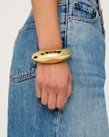 Our Alegra cuff hosts an oversized, exaggerated shaped design with defined edges. Its wide shaped body tapers gently at the sides making this easy to put on and take off for the special occasion it deserves.