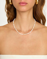 Our Ezra Necklace offers simple, yet a timeless design. Each necklace is made by hand in our studio using assorted freshwater pearls and 14k gold plated beads. One of our best selling styles, this necklace is easily wearable and adds a refined touch to any outfit.