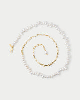 Just in time for summer, our Lucia anklet wraps the ankle three times, partly in freshwater pearls and party in a heavily-plated 18k gold chain. A piece made for scope, it can also be worn as a bracelet or necklace, and is handmade in Miami by our small team of women assemblers.