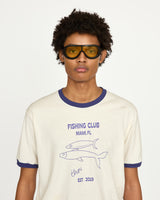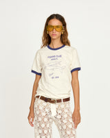 A nod to sun-soaked weekends and vintage bait shop tees, our Fishing Club T-shirt was inspired by one of our founders' childhood memories of growing up in Key Biscayne and fishing with her dad. Made from soft cotton and finished with classic contrast ribbed trim, it’s an easygoing staple meant to be worn with crochet, denim, or tossed over swim.