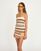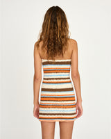 The Pará dress began as a skirt design and evolved into a strapless, asymmetrical tube dress through our design process. Handcrafted in a multi-colored interwoven pattern, each piece is crocheted entirely by hand around a peekaboo ring and finished with a subtle slit. Every dress takes up to three days to make.