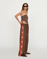 The Track Pants reimagine a traditionally sporty silhouette through Éliou’s lens of hand craftsmanship. Cut from lightweight nylon and adorned with natural cowrie shells and appliqué, each pair is embroidered by Vera, our co-founder’s aunt, whose hands have shaped countless Éliou pieces — turning athletic wear into something intimately refined.