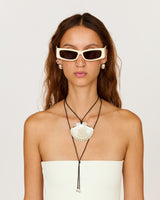 To keep your pieces in original, crisp condition remove before any sweaty activities. Keep it au naturale and avoid cleaning products, body lotions, hairspray, and perfume when wearing your Éliou.